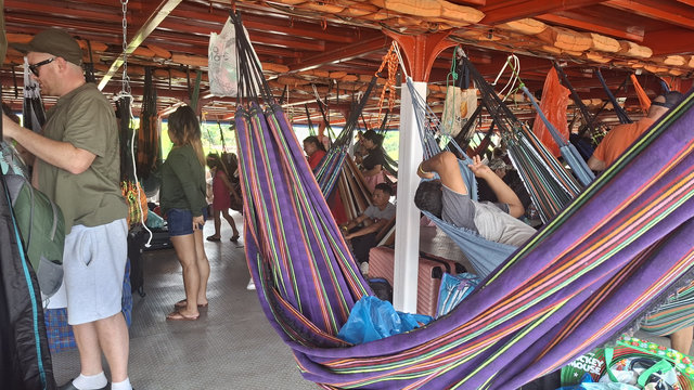 It didn’t take long for the top deck to become, what felt like, full with hammocks, a few pregnant women, lots of children, tons of luggage and a couple of dogs. Once we set off I took a quick look downstairs and it was even more packed than our floor, it was quite a sight and the way the hammocks lined up made a fantastic display of colour. It is really quite a sight to behold and as a westerner such a novel way to travel, but for Amazonian people this is normal and a means of getting from one town/village to another and some even use it to commute to and from work.