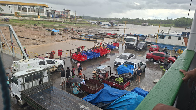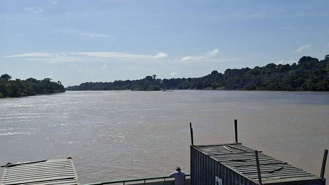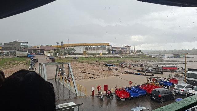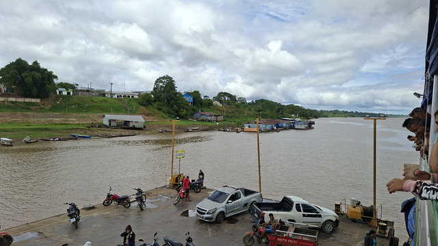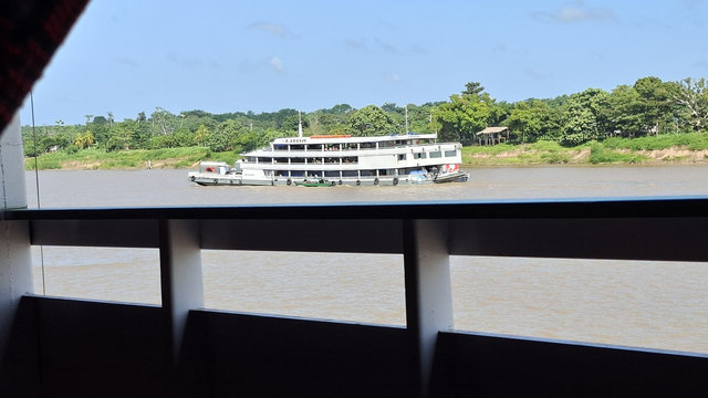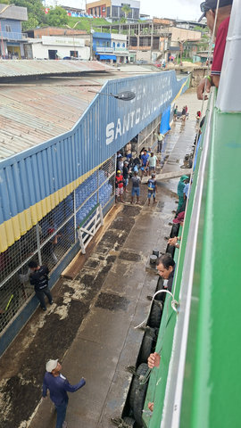 The morning of the 7th I got a tuktuk from my hotel to the port in Tabatinga. I was told to arrive 3 hours before departure but it was two hours away by the time I arrived. There were already two lines of luggage forming and lots of people milling around. The luggage is used to denote your place in the queue so I added mine and then went and signed in and was given a green armband. Some people had yellow armbands but I never did work out the difference between the two as we all seemed to do the same thing once on board. There were two guys with their luggage in front of mine and it didn’t take long to ‘hear’ that one of them, Alan, was from the London area, he was loud and cocky! The other, Luis, I found out later, was from Colombia. While sitting waiting for the action to start I decided that I should try to befriend these two lads and stick with them for the journey. This was not a hard task and so, just before we boarded, I had found myself some travel companions.