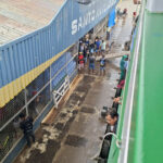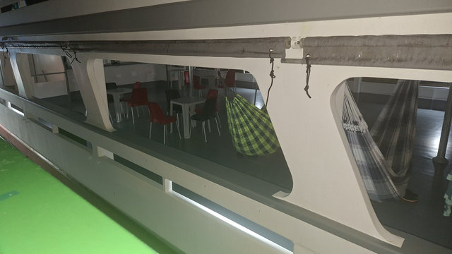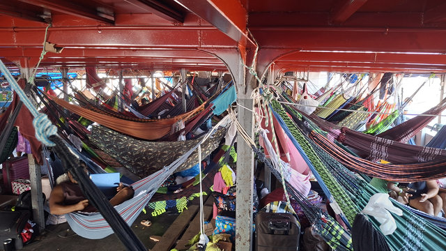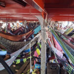I followed all the advise I had read online and slept diagonally across my hammock. Due to the fact it was a double one I managed to lay reasonable flat on my back and got a couple of hours sleep before we made another stop. I joined a few of the other passengers and watched loading and unloading of goods and people. More people got on than got off, which was quite alarming as the boat was already full. This continued throughout the next day, and became one of the highlights of the journey. I am not sure how so many people squeezed on and set up their hammocks, but they did at every stop. There was no turning anyone away and there were hammocks in places where I didn’t think you could fit another hammock. That first night we pulled up next to another boat and it looked like luxury compared to ours, it only had a few hammocks and there were tables and chairs to sit at. I think this may have been the fast boat and a lot more expensive.