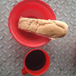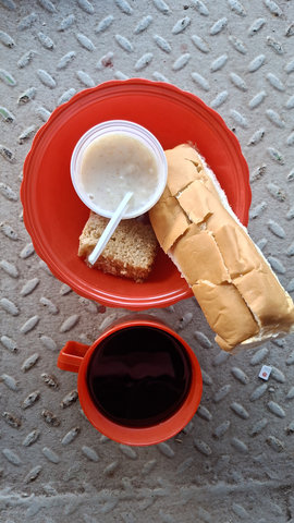 The food situation was not brilliant. Breakfast was a buttered bread roll and a sweet cup of coffee, lunch was chicken, rice, noodles and beans with grated cassava, dinner was chicken, rice, noodles, beans and grated cassava – repeat repeat repeat. The only difference was breakfast, the second day I went and queued earlier simply because I was up earlier and this time I had cheese in my roll and was given a small slice of cake. My third and final breakfast was even earlier and far better, not only did I get cheese in my roll, and cake, I also got a cup of rice pudding sweetened with coconut, which was actually very delicious. Lunch and dinner never changed and the queue was always so long that I waited until the end of the serving window to get mine.