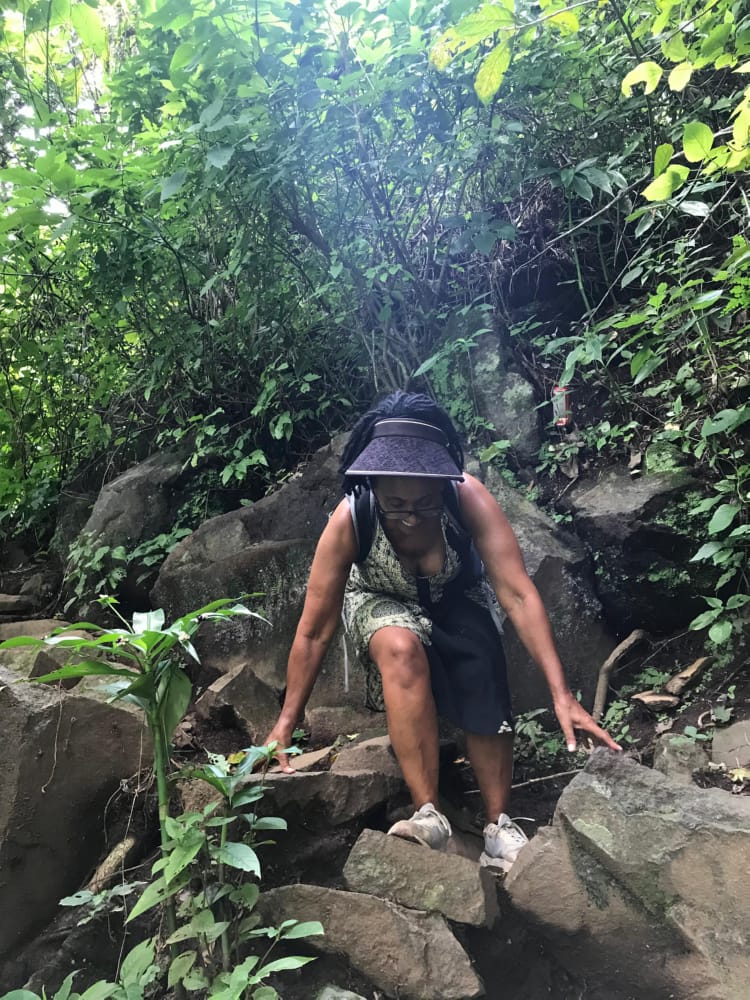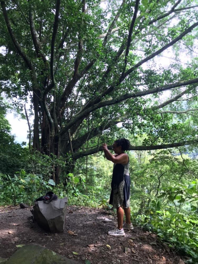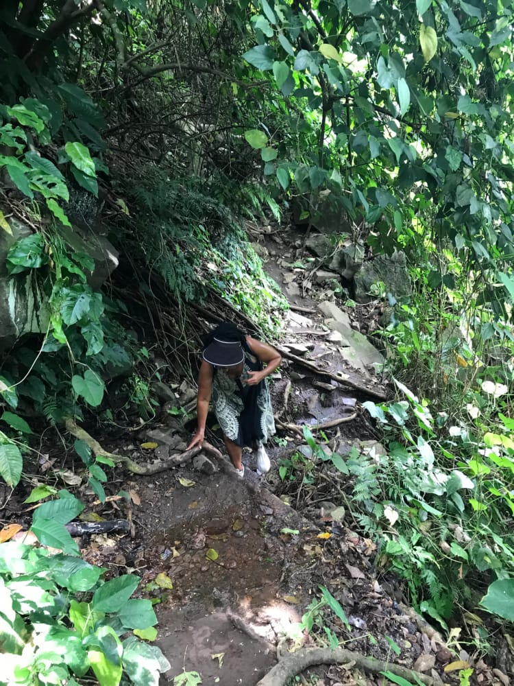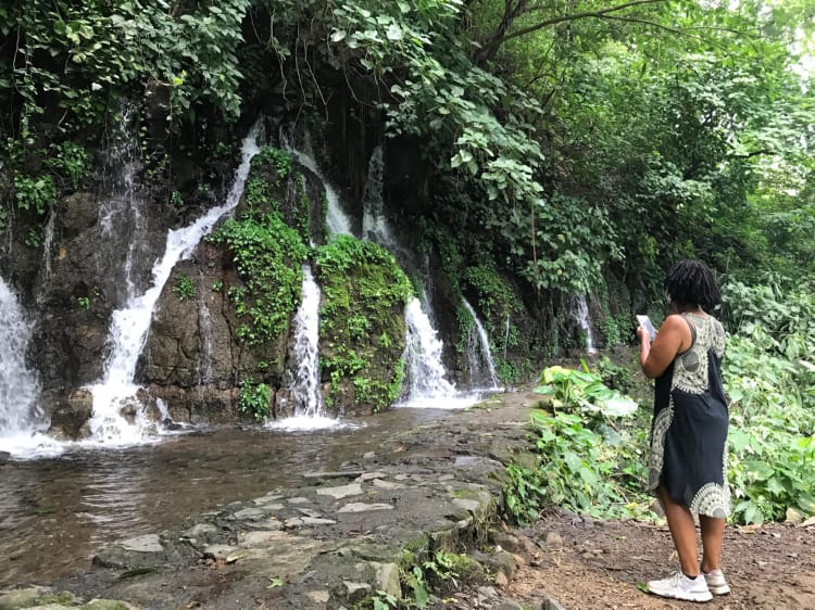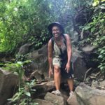 The best thing about the bus ride was, just as we got into Juayua, Yasmin called me, just to check that I was ok after our last call. It was just so loving and caring and really made my day to hear her voice. Love you daughter When I got into Juayua I located the meeting point for my guide and then found a little café place just around the corner. I had delicious chicken, rice, salad and a drink and all for $2.50. Sitting opposite was a guy in white converse trainers, white sunglasses and blue and white suffering short. I did think to myself what a twat (it was sunglasses) and left it at that. When I was in the truck with my waterfall guide (Emond), he said to me ‘you were sitting opposite me having your lunch’. I checked out his trainers and had a little giggle to myself. Anyway, he turned out to an alright kinda guy, and it was just me and him on this hike, so we went at my pace which was nice. He pointed out a few butterflies, a crab, a few different trees and even had a swim with me in the men’s pool. Swimming was actually very difficult as there is a