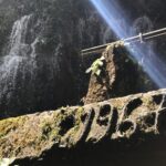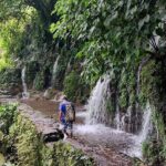 cave/tunnel to the woman’s pool which the water flows rather rapidly to, so it was like swimming against the tide most of the time. At one point I tried to reach the other side of the pool to stand under the waterfall but my swimming is not that strong and I couldn’t make it. But we did traverse the edge of the pool, I did it crablike with my back to sheer drop so I didn’t feel too nervous, we went under a small cascade of water and dropped into another cave, which was chest deep with water. We inched our way into that but it was quite challenging as again the current was strong and against us. We weren’t that far in when I asked if we could turn around and leave. The guide was fine with this and told me to just lift my body as if to swim and let the water do the rest. Wow, before I knew it, I was propelled back into pool. It was so much fun.