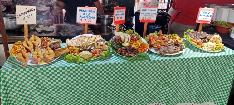 I was debating if I should go out this morning – my decision was made for me. So far things have been nice and quiet here, which is what I need right now. Last night the sister (co-owner) turned up. A fierce storm was underway so they (her and her brother) stayed in his room. However, this morning, she was up early and started blasting some awful, full on with the base, ragga style music – FFS. I showered, dressed and got the bus to Juayua, a food festival is held there every weekend. I did mean to go last weekend, but didn’t make it. This time I wished I had walked to the bus station, instead I went to the nearest stop, the bus was full and I had to stand all the way