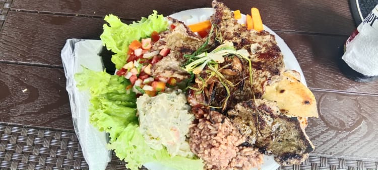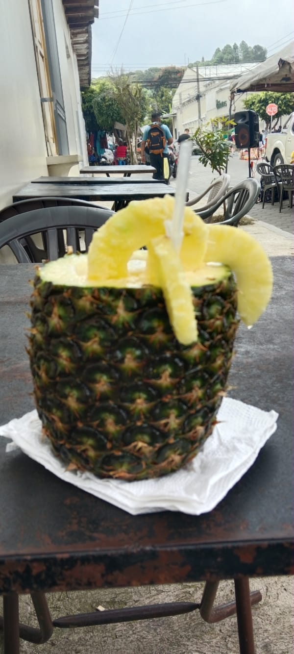 The festival wasn’t that big, just two streets lined with stalls selling the most delicious looking meat and seafood dishes, as well as several drink bars. I really should have got a fish dish, however as I was perusing the dishes a woman gave me a taste of the beef and that was it, sold to the lady with the dreadlocks. It was so melt-in-the-mouth, and my plate of food was excellent, bar the cheese tortilla, which I left, but I demolished the meat, roasted veg, rice and potato salad and green salad. I was so stuffed. I’m really not sure why I bought a pineapple cocktail after, or how I even managed to squeeze it in – but I did. After that I sat in the town square for a little while and watched the world go by, Juayua is quite pretty compared to Sonsonate, and a lot cleaner, the whole town is.