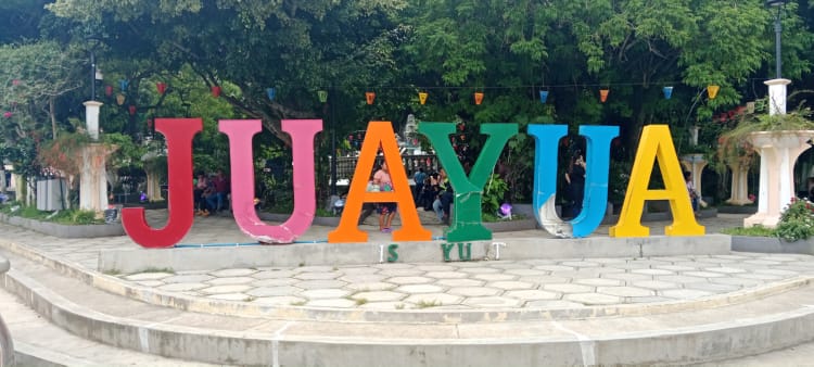 On the way back I sat at the front of the bus and what a delight that was. Juayua is on the Ruta de Flores and although I had read this is the wrong season to enjoy it, what I did see was very beautiful. The trees arching over the road and so many beautiful bushes in bloom with mainly red, yellow, purple and white flowers. The bus also passed through a town called Solcoatitan, which looks really beautiful and so colourful, and I could see they were enhancing the town centre, along with Juayua, in preparation for the high season, which starts at the end of this month. If I ever find myself in El Salvador again I will definitely do the Ruta de Flores and also make sure my shoulder is strong enough to do the 7 waterfalls.