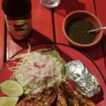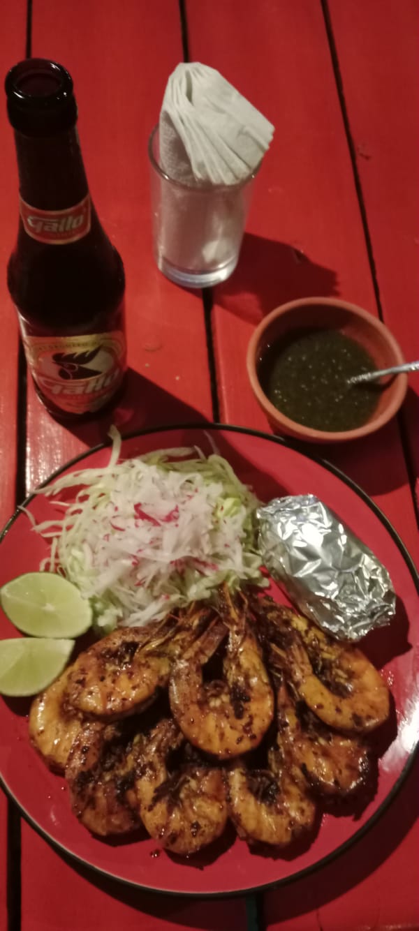 Later: I’m so falling in love with Guatemala – even this area, although so near to Flores Island, which I’ve yet to explore but expect it is a tourist trap. This little town is to die for, especially as the sun goes down. After spending the afternoon on my website (it’s going to take some work to catch up) I went for a walk to find dinner. I set my hope on a restaurant called Veamer, and after heading down a wrong road, I found it; literally one minute walk from my room. I couldn’t resist temptation and had king prawns. The plate came with 8 beautifully grilled prawns, salad, a jacket potato with cheese in the middle and toasted bread – OMG – so delicious. With a beer and a very small tip it came to £19 – pure delight. And it was magical watching the evening turn to night, the lights across the river sparkling, the colectivo boats coming in and out and the local children playing in the street.