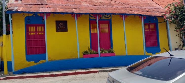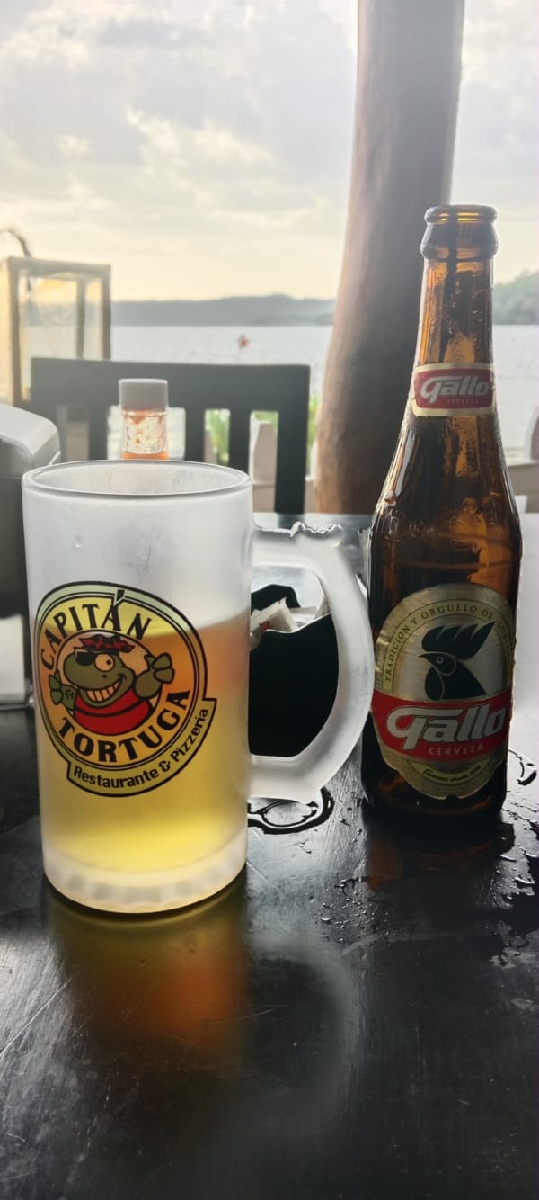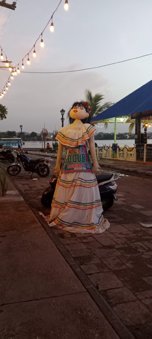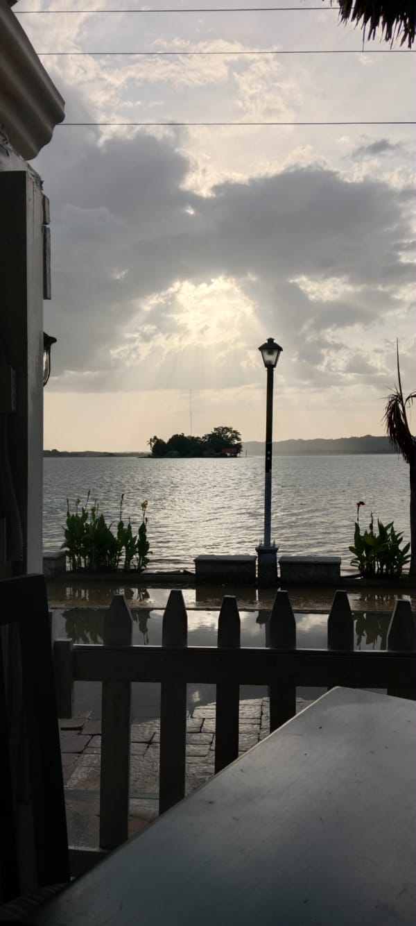 Later: I have had a lovely, chilled afternoon. I was just leaving to find a bar when the owner of the hostel, Ironi, turned up. Such a lovely lady, she showed me how to lock the front door as I had been leaving it unlocked and I paid her cash for my stay. After our little chat, she explained that the power outage was a planned one so engineering work could take place, I walked along the Lake, across lots of plank walkways, until I could walk no more. I then doubled backed on myself and, after perusing the menu of an expensive bar, the cocktails were 40q each, I found a less unassuming bar where the cocktails were 25q each. I sat with my toes in the Lake and had two cocktails and read my book. I didn’t think they were very strong, but when I got up to leave, I realised I was very mistaken! On my route home a local guy started chatting to me, mainly in English, but he did compliment me on my Spanish. I said my farewell to him when I started to lose track of what he saying in Spanish; I think it was something about taking me up into the mountains! I was very fortunate to witness the San Miguel rush hour, workers from the island were arriving by boat, jumping on their motos and heading home. I’m pleased to say that there were not enough of them to create a traffic jam, but they created quite a bit of noise. Anyway, I’m now chilling in front of the brick wall, drinking a rather nice Vudu Barbados cocktail that I bought in the shop a couple of doors down and will add another page to my website 😊