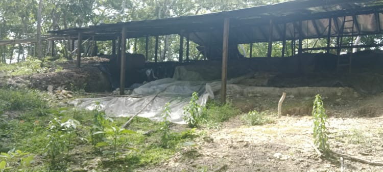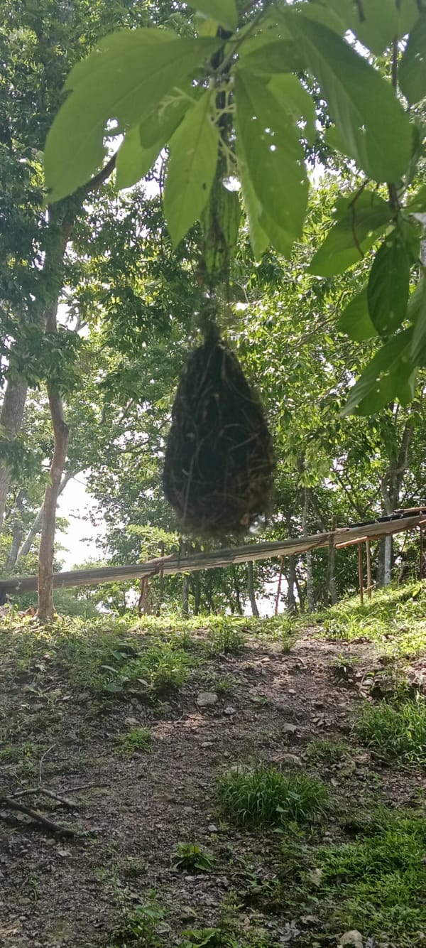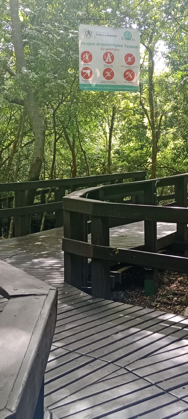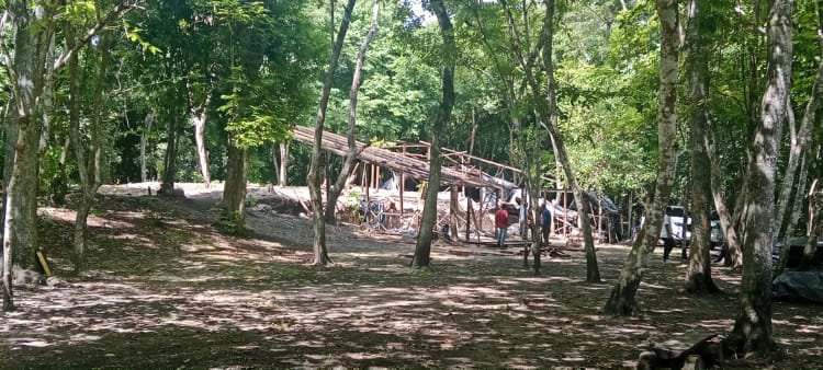 I went for a lovely walk this afternoon, up into the hills above San Miguel where the guy last night mentioned. I researched first and found out that there is a cenote, (a natural sinkhole, usually formed by the collapse of limestone bedrock, revealing a pool of groundwater), and an archaeology site up there, so off I went; it wasn’t far. The archaeology site wasn’t that impressive as it’s a work in progress, so there were a lot of archaeologists there and most of what they have so far revealed was covered in plastic. But it was worth the visit and also very interesting. Most of the area had a walkway but to see the actual dig areas you had to come off the walkway. I took a few pictures but like I said, there was not much to see. However, give it a few years and I think it will be quite an impressive sight as it was vast. As I was leaving, I could see mounds of earth and trees that obviously had something under them. The formation of these mounds was very different from the surrounding forest areas and some even had step like levels in them. It will be interesting to come back in a few years and see what they uncover. I didn’t make it to the cenote, but I did get a good view of it from one of the walkway’s viewing platforms. It didn’t look very inviting!