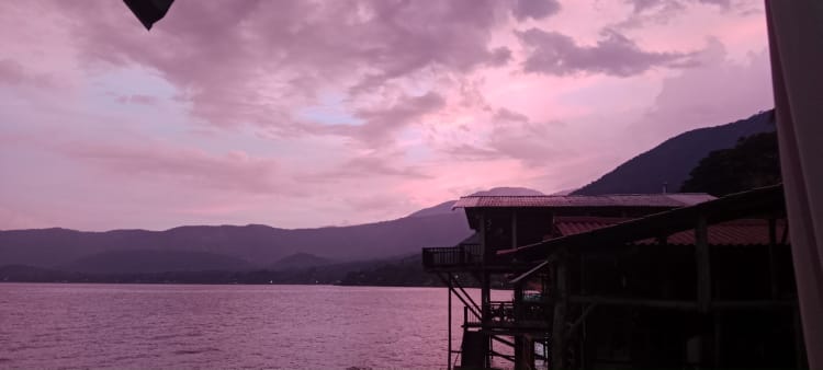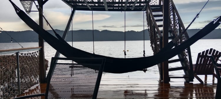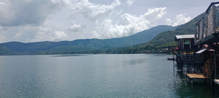 I treated myself and got an Uber to the lake, it was only $15 including a tip. The chicken bus would have only been $1 but I really didn’t have the energy in me to lug my rucksack, laptop bag and shopping on a bus. The drive was fine, although leaving at midday meant the traffic out of Santa Ana was horrendous. The main road was smooth and fast but once we got to the lake the road was a dirt track and very bumpy and slow.