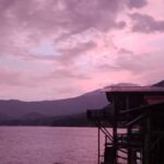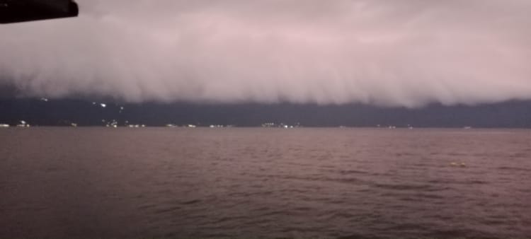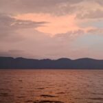 I sat in the restaurant area this evening and had a glass of wine – it was $5, the same price as the litre I bought this morning! So glad I have plenty left for tomorrow At first the reflection of the sunset, which is behind us, was quite beautiful, but then the clouds came in over the mountains and finally a dramatic storm hit. It was absolutely delightful sitting there watching the sky light up with thunder and lightning.