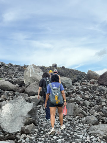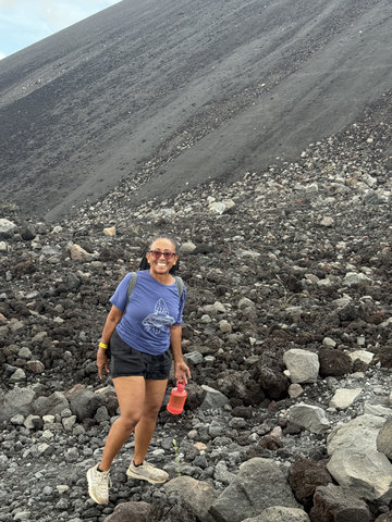The wait was long and by now I was actually feeling quite nervous about the decent. Eventually the signal came and I pushed off. OMG, I must have been on the fast path, my board did not stick, and off I went at what felt like a 100 miles and hour. I got faster and faster and I screamed louder and louder. Realising I was leaning back, I tried to sit forward to slow myself down and came of the board! It was quite a challenge to get back on whilst holding the handle at the same time because the board just wanted to keep moving. Anyway, back on I got and then hurtled even faster down the volcano, I am not sure what speed I hit, but I swear it was it was faster than I used to drive my car on the motorways. It was quite a relief to come to the end and only once I was standing could I actually say that it was awesome, but I am not sure I would want to do it again. When I fell off I grazed my ankle, not badly but it was caked in black volcano ash and stung like mad. I had water, so gave it a good clean before we got back on the bas for the return trip.