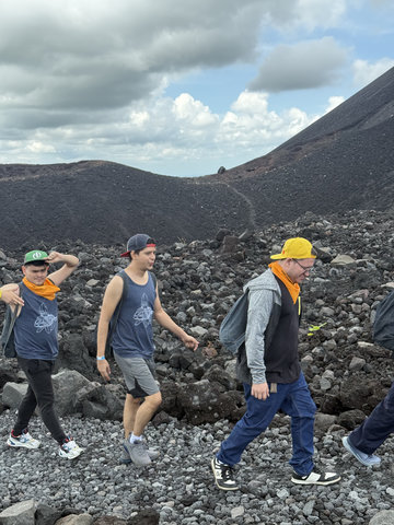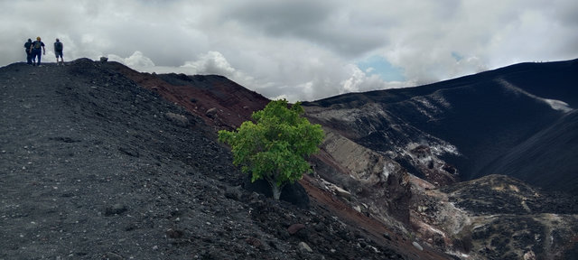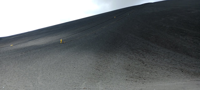 I was actually quite nervous about the event, not about the boarding down but rather the initial hike up the volcano. But really I had nothing to be nervous about, it turned out to a very short and easy hike, and my legs are actually a lot stronger than I give them credit for. The volcano is called Cerro Nigro, which means Black Hill, because it is (mainly) black. It is one of the newest volcanos in Nicaragua. It came into existence in 1850 and has erupted 23 times since then, with the last eruption in August 1999. I overheard someone saying that another eruption is due, but that didn’t stop me. On the way up we passed a couple of outlets that had steam pouring from them. The guide informed me that these are actually small craters and eruptions can take place from any of them.