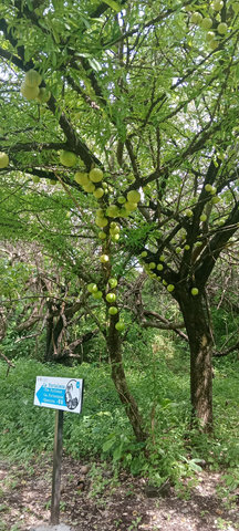 I decided to have a guide while there, especially as his cost was included in the entry fee, but he could not speak English! We started of in the one room, 5 display case, museum, and I was very impressed with myself in that I could understand most of what he was saying. However, I gave him my phone and G Translate came to rescue as needed. From there we walked around the ruins which, if I am to be honest, were not that impressive, but it was still interesting. On route we came across several trees with fruit attached to the truck and branches that looked like enlarged round green Christmas lights – I have never seen anything like it before. The guide also showed me the leaf from the tree which was in the shape of a cross. The indigenous people used the leaf as a compass as one of its segments pointed out more than the others, and they used that to indicate north.