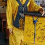 One thing I am glad of is that I paid the 200 c to have my board taken up for me, it was so heavy and I really don’t think I would have managed with it. A couple of the Honduros guys decided to take theirs up themselves and I could see them struggling. Once at the top we put on our yellow jumpsuits, wrapped bandanas round out mouths (I bought one yesterday at the bus station market) and put on protective goggles. Luckily the goggles were big enough to accommodate my glasses. I sat on my board at the top of the far right path down and had to wait for the signal before I could push off. I was able to see others leave on the other paths and they all seems to have problems, in that their boards stuck and they could not get up any speed. We had been told that if you lay back with your legs bent you go fast and if you sit forward with your legs straight you go slow.