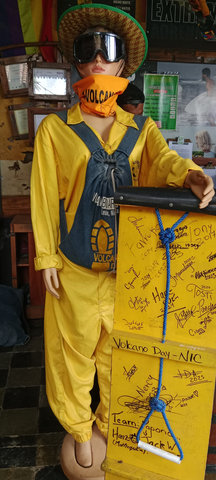 Today has been awesome – I went on the Cerro Negro Volcano boarding trip. It all started at 8am when a guy came and picked me up. I could have died when he dropped me off at ViaVia, so much for not going there again! It was where the trip organisers operate from. Luckily the staff and manager from last night were not there so I breathed a sigh of release, got my free T-shirt and relaxed while we waited to depart. We were quite a big party with a large group of people from Honduros and a few guys from Nicaragua. The journey to the volcano didn’t take long, I sat at the back where the guys were and I could hear them talking about me, the decided that I was 45 years old, 50 at the very most. I really must start telling people that I am 45, with a 25 year old daughter, Teon can be 5, Rachel 3 and Lucas a new born – lol.