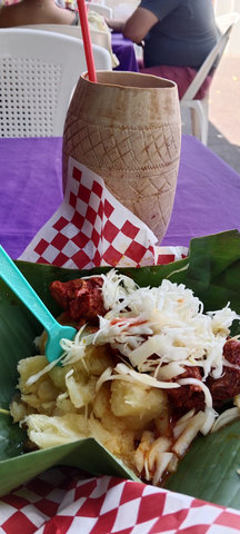 I’ve had a fabulous day. The tour was really informative, it was good to hear the perspective of a young Nicaraguan although he did try his best to stay neutral. It was mainly history based and I was a little disappointed that we did he did not take us to more of the churches/cathedrals/places of interest, but we did go to the university and had a very nice coffee at a posh hotel. I think the highlight of the tour was at the end when we went to market. There were three of us on the tour and we gave him 70c each and he bought lots of traditional bits and bobs for us to try, from cakes to fruit and finally a plate of food that was beef based and had lots of root vegetables and plantain, as well as two plantain and cheese deserts and a really delicious purple drink that had chia seeds in it.