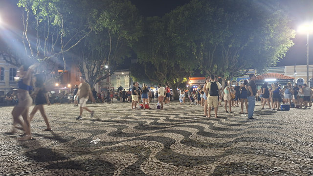 It was quite a relief to finally find ourselves docking in Manaus. Alan and Luis were gagging for a drink so the first thing we did was look for a bar. We walked quite a way and found a market, but all the stalls were closed. We asked around and several people directed us to go to the top of the hill where we found an open stall selling beers. The stall owner had tables and chairs so we dropped our bags and sat down and had a large bottle of beer each. OMG, it was so good, cold and refreshing – just what the doctor ordered. We then got a taxi and I got dropped off at the end of the road my hostel was on. It was a good ten minute walk but I was very merry and did it happily. The walk led me past the square where the Amazonas Theatre is and there was a free concert going on. My hotel was literally 3 minutes further up the road so I dropped my bags and off to the concert I went. I found a French couple sitting on the stairs of the Monumento a Abertura dos Portos as Nacoes Amigas, which is in the middle of the square, whom I recognised