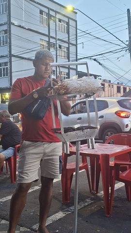 has finally stopped. However, I have read that Manaus is not as safe as most of the other towns I have visited and muggings are common. So perhaps just a walk down to the opera house and back will suffice, it is all main road and lit up so it should be relatively safe. I’ll leave my phone here and just carry a little bit of cash, enough for a beer and something to eat. I’m also wondering if the lady with the street food is still out as she had some interesting looking deep fried ball things, which I think are acaraje, which I read are a back-eyed pea ball filled with prawns and typically found in north Brazil. She also had some very delicious looking cakes, after all of the sweet coffee on the boat I could eat a sweet piece of cake right now. However, It is now 8pm, I expect she is at home preparing food for tomorrow!