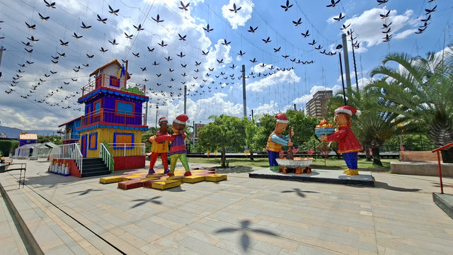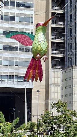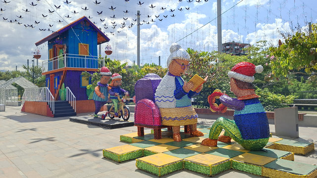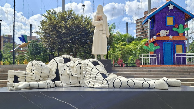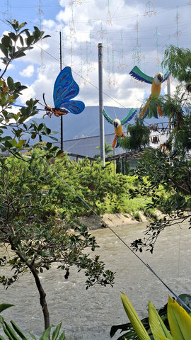 Parque de Rio was beautiful, it is on the river Medellín, which is a branch of the Magdalen River. The park is really well maintained with lots of placards with information about the environment and trees and fauna. They had beautiful birds and butterfly Christmas decorations hanging over the river, but as it was daytime they were not lit up. I walked along the river and crossed over to the other side where there were displays of Christmas houses and people dancing. I think I may go back tomorrow evening to see it all lit up, I bet it looks spectacular. There were also lots of Christmas stalls but they were all closed.