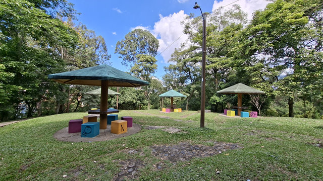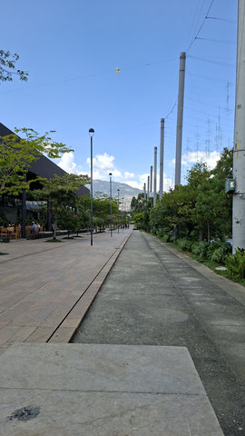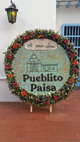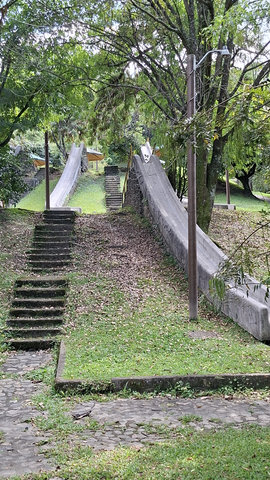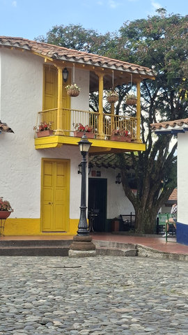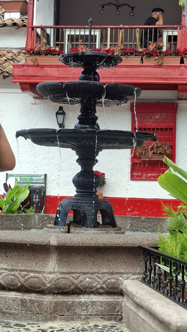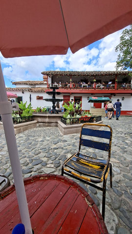 I crossed back over the same bridge and continued along the river and headed inland and uphill to Pueblito Paisa. It was quite a climb and the road was extremely long with a couple of hair pin bends, but I found a couple of short cuts. The first was through Parque de Toboganes, which was an odd little park. It had quite a few covered picnic seats and tables, which looked like weird mushrooms, and then all of these really long and steep concrete slides. I’m really not sure what clothing you’d need to go down them, or contraption, I am sure concrete is not great for sliding down, too much friction. The second short cut was up a foot worn path and through some trees, it was extremely steep and very precarious in places, but once I had started there was no going back. I felt quite relieved when I saw a jogger not far above me, so I diverted slightly and found the path he was on and followed it to the town, which was at the very top of the hill.