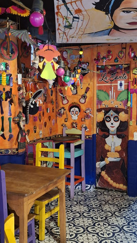 After my breakfast I went back to bed – lol – and spent a few hours exchanging Christmas wishes with friends and family. Christmas in Colombia is celebrated at midnight with fireworks, exchnaging of presents and, if really religious, a visit to church. So it was a quiet day all considering and I was happy to spend most of it bed. It was my rumbling belly that finally got me up and I went for a walk around Laureles. There were quite a few bars and restaurants open but it was very quiet and I really enjoyed the tranquil walk. I finally settled on a Mexican restaurant that was overly decorated with the day of the dead theme. I had nachos and guacamole for starters and then a mixed meat burrito. I washed it all down with two cocktails before I headed back to my room and back to bed.