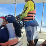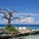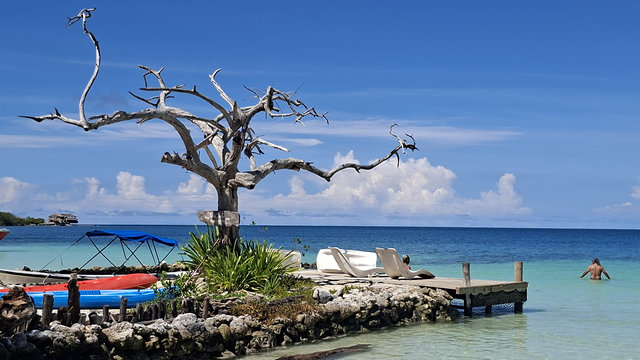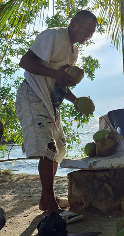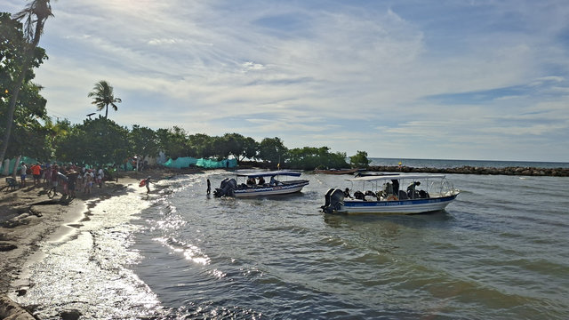WoW – the Caribbean coast of Colombia is so beautiful and today was better than I was expecting. Jorge (Martha’s husband) drove us to the pier to get the boat. It didn’t look like many people were going, but looks are very deceiving and by the time we actually got on the boat it was packed, mainly with OAPs, most of whom had miserable long faces on them. The boat journey was very precarious, by the time we were too far out to return the engine kept cutting out. Luckily it started again every time but when it did we all got sprayed with water and guess who was sitting at the edge – me. By the time we got off I may well have been for a swim I was that drenched. The old lady in front of me got the right hump and I think the fact that Filipe, his wife, daughter and I found it hysterical didn’t help.