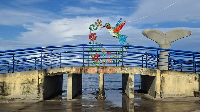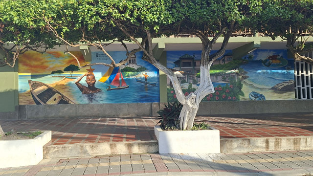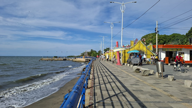 After my shower I went for a walk along the beach front. It was lined with people selling everything from drinks to souvenirs. It is quite a nice set up as there are lots of little peninsulas jutting into the sea, all had chairs and tables on them and a couple even had bars and one had a restaurant. There were also a lot of families chilling on these and so many children swimming. I had read that this is a popular holiday location of Colombians and I can see why. It is very beautiful and not over thrown with tourists. One thing that is sad, well sad for me but not the town, is that there is a lot of road works going on and the central park is also in the middle of make over, so a lot of the main strip looks like a builders yard, which has put me off of extending my stay. Although I may change my mind about that tomorrow.