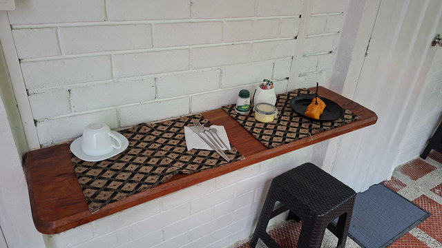 What a wonderful start to December. I woke this morning to find the start of my breakfast waiting for me on the little shelf table just outside my room. A plate of the most sweet, fresh, delicious papaya ever and a flask of coffee. Martha explained breakfast is normally at the table in the front yard but due to the rain the area was too wet – no complaints. I commented on how delicious the papaya was and a few minutes later she came back with more. After that I had egg, cheese, bread and a crispy corn pancake type thing, then Martha brought me even more bread and some jam. It was the best three course breakfast I have had for a long time.