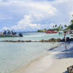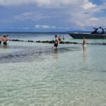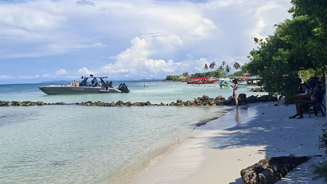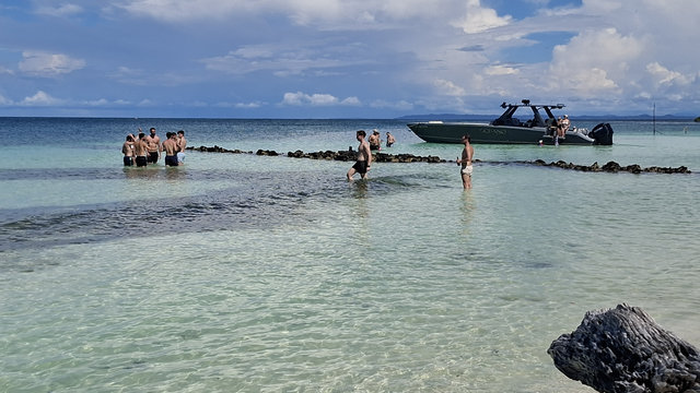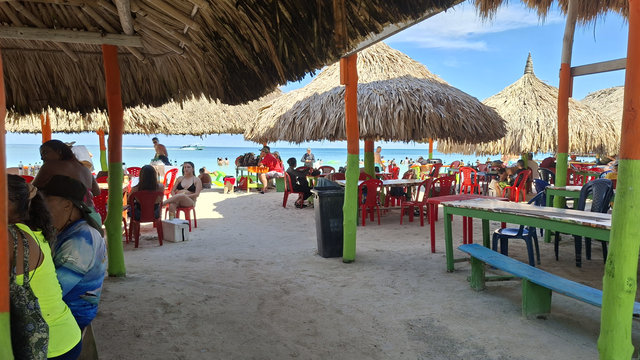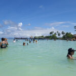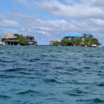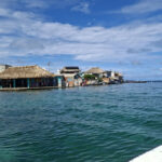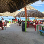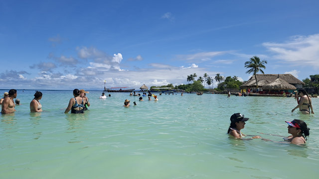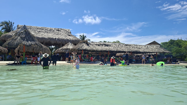 On route to Islas de San Bernardo, our final destination, we stopped by 3 other islands. We didn’t get off but were given a talk about each island by the crew member. Obviously it was all in Spanish so I haven’t a clue what he said about any of them. They were very luxurious holiday destination type of islands, with private hotels sitting on golden sands. Absolutely stunning, and so was Islas de San Bernardo. It had clear warm turquoise waters, you could walk out for quite a way before they got deep, and golden sands. The place where we went to was completely set up for day trippers with a couple of bars and hundreds of tables. And yes, lots of tour boats arrived, mainly full of Colombians, and we all had a similar package, swim, eat, swim, return. I had fish, salad, rice and plantain, washed down with a beer and it was delicious.