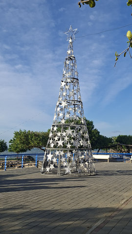 After getting ready very slowly, which is my norm these days, I had a walk into town and was surprised at how quiet it was compared to yesterday. Most of the Colombian holiday makers must have gone home, I expect they only came for the weekend, so there were very few street vendors out. The beach front promenade felt quite deserted, and I was able to take lots of photos of the Christmas displays. They even have a 2026 display up and ready for the new year. It was actually lunch time by the time I got to the town so I found a little place that wasn’t too expensive and shared my chicken with a couple of stray dogs, I thought they might like some of the yuca but they didn’t and I don’t blame them, I didn’t eat it either as it was very stringy. The boiled potato was nice as it still had the skin on and was very buttery, but what I don’t understand is why Caribbean people, in general, are so tight with the coleslaw / salad? While eating I also researched my next move, I’m going to have to go back to Cartagena to get the bus to Santa Cruz de Mompox, the whole journey will take about nine hours. Looking at the map of Colombia I think I have some very long bus journeys ahead of me.