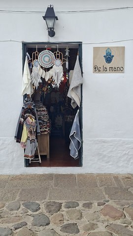 We departed company in Tunja. Here I needed to get another bus, a local one to Villa de Leyva. But first I had a coffee and a rather delicious cake type biscuit covered in coconut chips. After a visit to the loo I found the counter for my bus, “it leaves in 2 minutes” the guy said. I tried to buy a ticket for the next bus, which was in 15 minutes but he was having non of it, “this one is better” (!). When I got down to the bus stand there must have been about 20 buses sitting there so I asked a couple of police officers if they knew which one I needed, they started to walk me one way down the row when a driver came running up asking if I was going to Villa de Leyva, we were heading in the wrong direction!