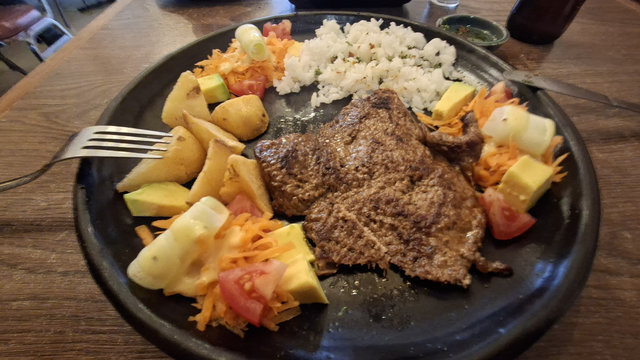 It was still raining when I left the Instituto, but not heavily so I made my way to Don Martin, which was open. I got such a warm welcome, obviously being a returning customer indicated that I enjoyed their food. The waitress translated the daily menu and I had pumpkin soup, steak, rice, salad, potatoes and a beer. This time I told her not to bring the lemonade. The food was delicious and I was very happy to be there as the rain become quite torrential and at one point there were small hailstones.